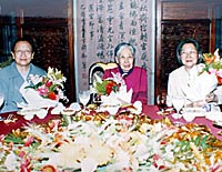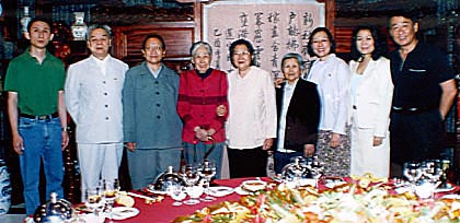 偉人們?yōu)榱耸聵I(yè),付出畢生的一切,并沒有給親屬后人留下什么物質(zhì)財(cái)富,甚至連所有家庭都應(yīng)有的溫情回憶,也極其有限。歷史就是歷史,無法改變,更不能抹去;當(dāng)事者的回顧總是帶著濃重的個(gè)人色彩和不可避免的片面性;旁觀者的記憶更隨著境遇變遷因人而易。眼前,這一切已是“而今邁步從頭越”。三代人的歡宴進(jìn)行了兩個(gè)多小時(shí),錄像機(jī)攝下了充滿歡聲笑語的一幕幕場景。媽媽和姨媽興趣盎然,偶爾交頭議論,不時(shí)插上幾句,始終滿意地笑著。銀絲皓首的光美奶奶沒有怎么講話,慈祥而超然地看著孩子們,孱弱清癯的面龐上泛起紅暈,顯得那么幸福,那么美麗!