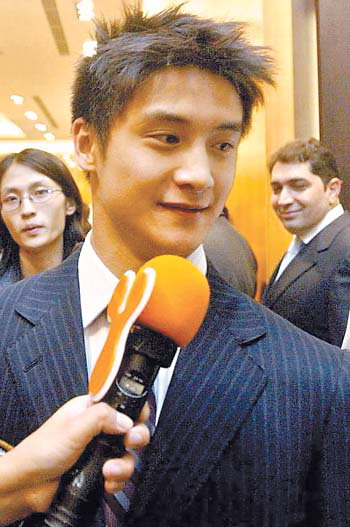 可能是因為長途飛行的緣故,當晚不停周旋于各路名流之間的田亮,看起來有些力不從心。當記者問是參加運動訓練消耗體力大還是出席各種社交活動消耗大時,他很圓滑地回答道:“出席活動很耗費精力,不過論體力消耗當然還是運動訓練大。雖然各種社交活動給我枯燥的跳水生涯增添了色彩,但我只把它當作暫時的調(diào)整,春節(jié)后會投入訓練中。”當被問到與英皇簽約進入娛樂圈的事情時,田亮坦率地表示正在考慮中:“我愿意去試一試,嘗試一下與過去完全不同的人生滋味。不過目前只想輕松一下,簽約的問題慢慢由經(jīng)紀人洽談!