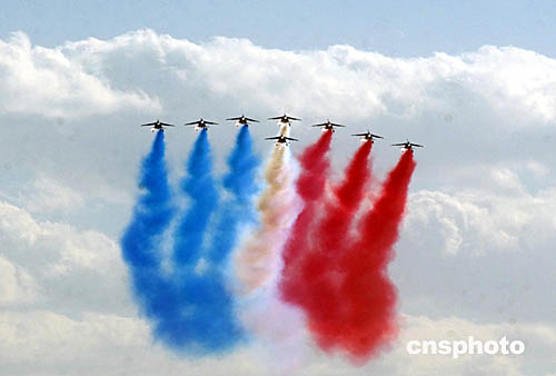 據(jù)中央電視臺消息,由于天氣的原因,"法蘭西巡邏兵"飛行表演隊(duì)在北京的特技飛行表演一直未能如期進(jìn)行。經(jīng)過中法雙方有關(guān)部門的協(xié)調(diào),"法蘭西巡邏兵"飛行表演隊(duì)今天下午將在南苑機(jī)場進(jìn)行正式的飛行表演,屆時(shí)官方電視臺將對此現(xiàn)場直播。
