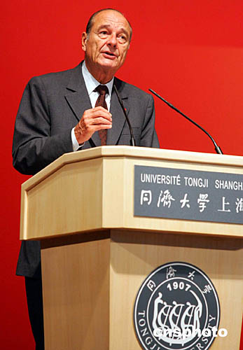 素有“中國情結(jié)”的法國總統(tǒng)希拉克今天一到上海就來到著名高等學府同濟大學,向全中國青年滿懷感情地表達來自法國的友誼與共同接受新世紀挑戰(zhàn)的美好愿望,并接受了中國學子寓意中法友誼長存的禮物。