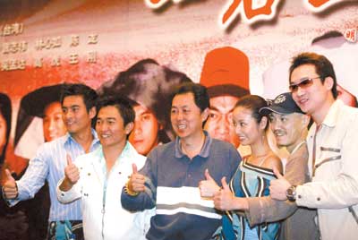 《一石二鳥》是今年明星陣容非常強(qiáng)的賀歲搞笑片。吳宗憲、林心如、雪村、陳龍、吳孟達(dá)、曾志偉、高虎,7位內(nèi)地、香港、臺灣的大腕明星都在片中有精彩表演。正像雪村昨天在發(fā)布會上所說的,這部片子是個純粹的商業(yè)電影,“就是沖著錢去的。”在戲中,本來就有喜劇效果的雪村穿上了難得一見的古裝戲服,頭發(fā)也被設(shè)計成了雷震子的發(fā)式,更大膽使用鐵鍬作為自己的防身武器,實(shí)在是搞笑得不得了。而吳宗憲更是與林心如大演親熱對手戲。