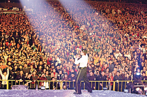 前晚在奧運(yùn)中心體育場(chǎng)的演出全場(chǎng)爆滿,而場(chǎng)外也極之壯觀,于東南西北四個(gè)閘口,最少每一個(gè)閘擠了四、五千人;大會(huì)雖安排了七百名公安協(xié)助維持秩序,但公安也怕控制不到場(chǎng)面,為防場(chǎng)面失控,馬上急召武警,將場(chǎng)館重重圍著。由于場(chǎng)館內(nèi)外有逾十萬(wàn)人群離開(kāi),堵塞了場(chǎng)口,“華仔”也無(wú)法于個(gè)唱后離去,要安排公安車(chē)進(jìn)入后臺(tái)位置來(lái)接;不過(guò)因人群太多,公安車(chē)也無(wú)法開(kāi)動(dòng),花近大半個(gè)小時(shí)才能駛進(jìn)場(chǎng)內(nèi)接走“華仔”。而工作人員則于場(chǎng)內(nèi)苦等近四個(gè)小時(shí),才可以離開(kāi)場(chǎng)館返回酒店。