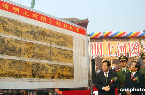 十月十八日,《清明上河圖》特種郵票首發(fā)儀式在河南開封清明上河園舉行。《清明上河圖》特種郵票是依據(jù)北京故宮博物院珍藏的中國(guó)北宋著名畫家張擇端的《清明上河圖》原作設(shè)計(jì)的。該郵票是中國(guó)郵票從一八七八年開始發(fā)行迄今為止最為精美的一套古代名畫郵票,也是中國(guó)郵票發(fā)行史上選題宏大、具有很高收藏價(jià)值的一套郵票。作者:何曉聰
