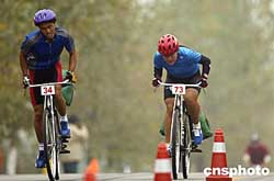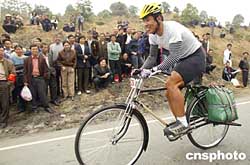 十月十九日,全國第五屆農(nóng)民運動會的自行車載重比賽在江西省宜春市舉行。
