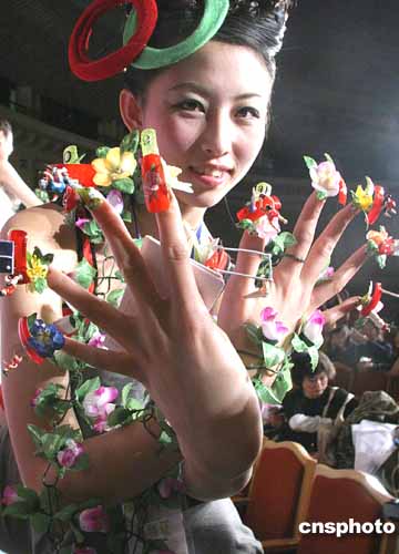 十月二十日,中國國際美容時(shí)尚周美甲冠軍大賽在北京展覽館劇場舉行,造型獨(dú)特的立體美甲令人眼花繚亂。作者:廖文靜