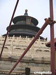 中新網(wǎng)10月21日電 北京娛樂(lè)信報(bào)報(bào)道,天壇祈年殿昨天開工大修,此舉也拉開了北京世界遺產(chǎn)大規(guī)模修繕的帷幕。據(jù)悉,本次大修投資2000多萬(wàn)元,是今年北京市投資最大的文物修繕項(xiàng)目。