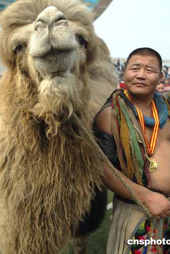 本次比賽不僅僅有金銀銅三塊獎牌,組委會特意按照“那達慕”大會的頒獎特色,冠軍將另外獲得一頭駱駝,亞軍是一匹馬,三、四名各一頭牛,五至八名每人一頭羊。中新社記者:盛佳鵬