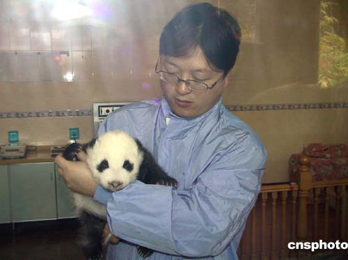 中國首只海歸大熊貓“華美”今年在四川臥龍順利產(chǎn)下一對雙胞胎,目前雙胞胎寶寶長勢良好。10月25日,游人有幸看到剛滿五十四天的雙胞胎之一在育嬰室生活的珍貴場面。作者:張華
