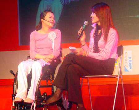 中新網(wǎng)10月27日電 據(jù)華西都市報(bào)報(bào)道,25日晚,桑蘭出現(xiàn)在復(fù)旦大學(xué)參加“2004桑蘭校園行”活動(dòng),與高校學(xué)子一起對話奧運(yùn),為2008年的北京喝彩。這是繼北京、廣州之后,桑蘭校園行的第三站。桑蘭是個(gè)絕對堅(jiān)強(qiáng)的人,坐在輪椅上的她沒在外人面前露出一點(diǎn)沮喪的表情。