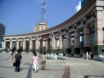 廣場整體上為北高南低、西高東低,強調(diào)其向水性和向陽性。人們既可以在這里聽音樂會,又可以在林間小憩、水中嬉戲,還可以在地下商場購物,了解蕪湖的人文歷史、廣場與大、小鏡湖、中山路步行街一起,組成了一個集觀光、休閑、購物、娛樂于一體的城市中心旅游區(qū)。