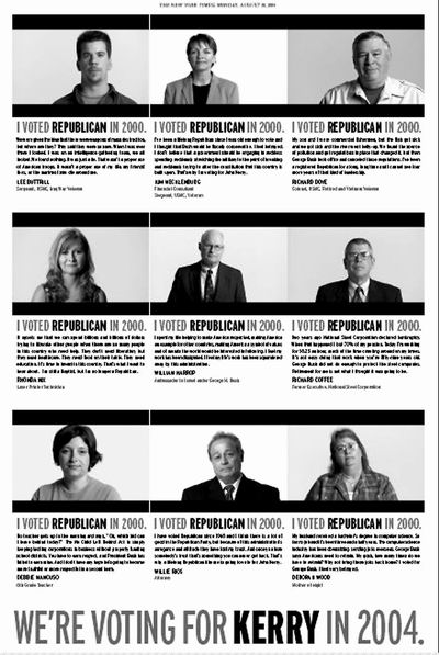 與邁克爾·摩爾的激烈攻擊態(tài)度不同,美國(guó)紀(jì)錄片領(lǐng)域的執(zhí)牛耳人物艾羅·莫里斯(Errol Morris)采用了更為客觀、理性的大選廣告戰(zhàn)略。這位奧斯卡最佳紀(jì)錄片得主參加了美國(guó)政治運(yùn)動(dòng)委員會(huì)發(fā)起的“前進(jìn)運(yùn)動(dòng)”(Move On),采訪了50多位在2000年投過(guò)布什一票、如今轉(zhuǎn)向克里陣營(yíng)的普通公民,讓他們直面鏡頭,訴說(shuō)為什么產(chǎn)生了這樣的立場(chǎng)轉(zhuǎn)變。
