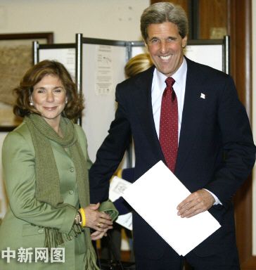11月2日,美國民主黨總統(tǒng)候選人克里在其家鄉(xiāng)波士頓投票。