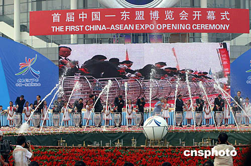 中國國務院副總理吳儀、柬埔寨首相洪森、老撾總理本南、緬甸總理梭溫、泰國副總理比尼、越南副總理范家謙等中國、東盟國家的政要,一起為中國東盟博覽會開幕式剪彩,將來自中國和東盟各國江河湖海、象征著雙方合作源遠流長、生生不息的清純之水傾入瓶中。