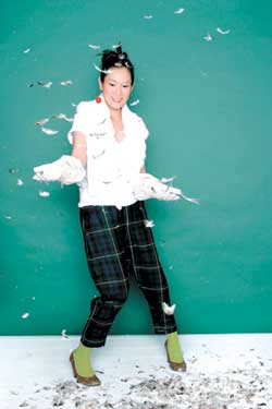 從首體主體舞臺(tái)延伸出的T型延伸臺(tái)長(zhǎng)達(dá)8米,奶茶可以在其間自由與茶迷們親密溝通。上海演唱會(huì)上,雖然也有吊鋼絲,但由于舞臺(tái)很小,和觀眾太近,只能上下活動(dòng),效果自然不很壯觀。這次不同,舞臺(tái)前后各有支柱,奶茶的鋼絲可以上下前后移動(dòng),加上舞臺(tái)前沿還有很多鏤空,不時(shí)有風(fēng)從那里吹過來,可以想象屆時(shí)的壯觀場(chǎng)景。