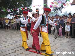 首屆中國—東盟博覽會在廣西南寧召開期間,南寧千年古鎮(zhèn)——揚(yáng)美舉行中國民俗風(fēng)情游暨聯(lián)歡活動,壯族姑娘的表演吸引了眾多參加博覽會的海外賓客。作者:阮萃