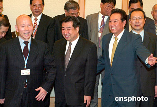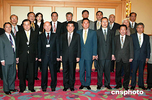國務(wù)院副總理回良玉、國臺辦主任陳云林、農(nóng)業(yè)部部長杜青林,十一月八日在北京中南海會見臺灣前民進黨主席許信良及其率領(lǐng)的“兩岸農(nóng)業(yè)交流訪問團”。中新社記者:滿會喬