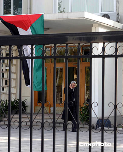 十一月十一日下午,北京的巴勒斯坦國駐華使館已經(jīng)降半旗,向逝世的阿拉法特主席致哀。中新社記者:史利