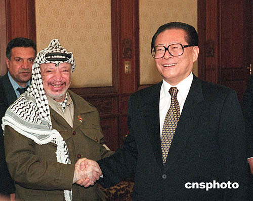 資料照片:江澤民會(huì)見阿拉法特