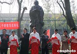 十一月十五日,香港孔教學(xué)院院長湯恩佳先生捐贈北京語言大學(xué)孔子銅像落成揭幕,該校同時舉辦“孔子與世界文化”學(xué)術(shù)研討會,以紀(jì)念偉大的思想家、教育家孔子對中華文明及世界文化所作出的特殊貢獻(xiàn)。