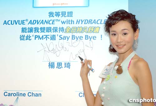 藝員楊思琦11月15日在香港出席全新ACUVUE隱形眼鏡新聞發(fā)布會,楊思琦試用產(chǎn)品后,見證簽名推介。作者:鄧慶樂