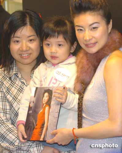 郭晶晶在現(xiàn)場(chǎng)與市民合影。作者:趙振清