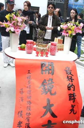 十一月十七日,由臺(tái)灣著名導(dǎo)演侯孝賢執(zhí)導(dǎo)的電影《最好的時(shí)光》在臺(tái)北開(kāi)鏡。圖為著名影星舒淇(左二)在開(kāi)鏡前上香。作者:董會(huì)峰