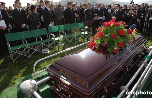 當(dāng)?shù)貢r(shí)間十一月十九日,美華裔女作家張純?nèi)绨苍嵩诩又萋逅拱⑼兴故械摹疤焯弥T”墓園。她的丈夫、父母、弟弟以及眾多仰慕者一起為她送行。作者:陳鋼