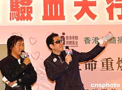 香港明星黃秋生(右)20日出席“骨髓捐贈驗(yàn)血大行動”,以名人效應(yīng)影響更多人。作者:譚達(dá)明