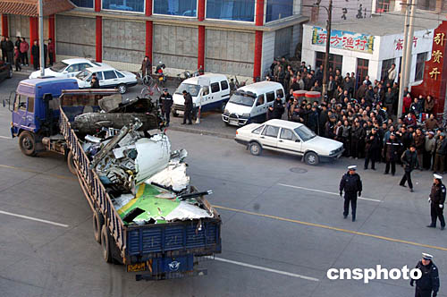 圖:包頭空難飛機殘骸運離現(xiàn)場
