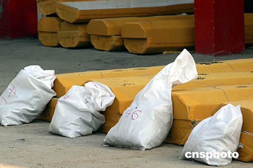 11月23日,11.21包頭空難事故遇難者遣體與白色口袋內(nèi)的遇難者遣物由有關(guān)部門鑒定并妥善安置,等待親屬辨認(rèn)安葬。中新社記者:張宇