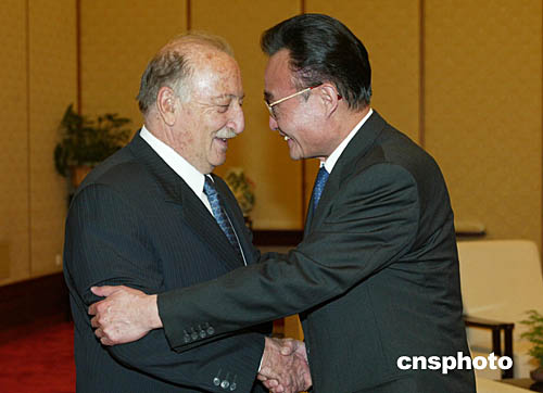 全國人大常委會委員長吳邦國十一月二十三日在北京會見約旦參議長里法伊。中新社記者:滿會喬
