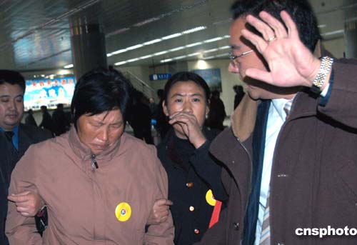 包頭11.21空難事故中的機組人員家屬,11月23日深夜乘坐飛機抵達包頭。作者:張宇