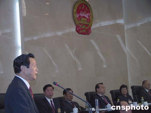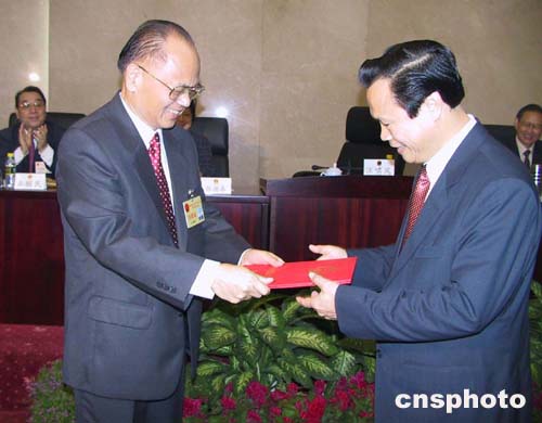 中新社?谑辉露针(記者王辛莉 莫成雄)海南省第三屆人大常委會(huì)第十三次會(huì)議今天上午舉行表決,海口市長陳成出任海南省副省長。海南省委書記、省人大常委會(huì)主任汪嘯風(fēng)今天向陳成頒發(fā)了任命書。