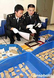 北京海關(guān)近日在一外籍男性旅客行李箱中查獲大量珍貴古生物化石及動(dòng)物骨骼,共計(jì)217件,動(dòng)物骨骼、牙齒14包,及兩個(gè)動(dòng)物頭骨,兩個(gè)動(dòng)物腳爪。這些化石基本上都源自澄江生物群(云南省澄江縣)和熱河生物群,尤其是澄江生物群屬于國(guó)家重點(diǎn)保護(hù)的地區(qū),產(chǎn)自這個(gè)地區(qū)的化石相當(dāng)珍貴。目前此案正在進(jìn)一步審理中。作者:雷虹