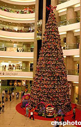 經(jīng)濟(jì)持續(xù)向好,加上臨近圣誕節(jié),香港大型商場(chǎng)均以大額宣傳費(fèi)用,以增加人流,希望今年圣誕節(jié)業(yè)額有可觀收入。圖為時(shí)代廣場(chǎng)大堂裝飾紅紅火火的巨型圣誕樹,充滿圣誕氣氛。作者:譚達(dá)明