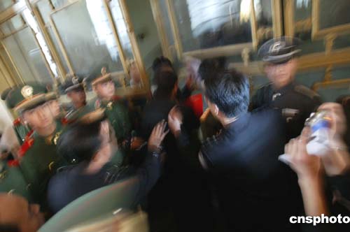 武警保護(hù)奔馳車競(jìng)拍者安全離開拍賣現(xiàn)場(chǎng)。作者:任海霞