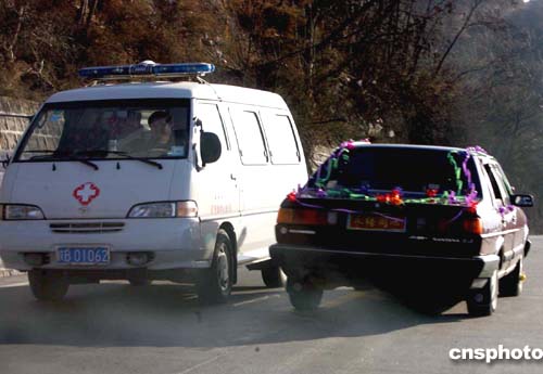 圖:救護(hù)車婚車背道而馳 銅川陳家山亦憂亦喜