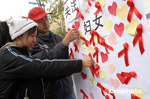 國務(wù)院防治艾滋病工作委員會辦公室、中宣部、衛(wèi)生部、全國婦聯(lián)、教育部、商務(wù)部、共青團中央、國家廣電總局、北京市人民政府等今天在北京聯(lián)合舉辦了“關(guān)注婦女,抗擊艾滋——各界婦女心系紅絲帶倡議行動”的大型主題活動。全國婦聯(lián)向各界的婦女姐妹們發(fā)出“行動起來,積極投身抗擊艾滋的工作中,為人類的健康貢獻自己的一份力量”的倡議書。