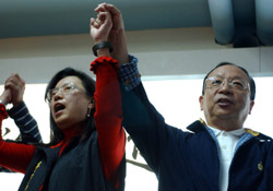 中新網(wǎng)12月3日電 由新任國民黨“中常委”蔣方智怡、林奕華、姚江臨組成的“菜鳥助選團(tuán)”,2日前往同黨籍臺北市“立委”候選人章孝嚴(yán)競選總部,為他加油打氣。