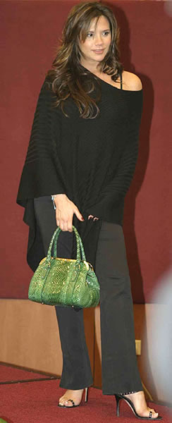2日,維多利亞準時出席新聞發(fā)布會,采訪過她“處女秀”的記者驚奇地發(fā)現(xiàn),辣妹居然跟自己“撞衫”,和10月22日來滬參加SWATCH代言時穿得一模一樣:黑色連身裙,外罩一件碩大黑色披肩!袄泵谩边脫不了女人的那點嗜好,對冒牌貨“情有獨鐘”!拔曳浅O矚g到上海的小店去淘東西,這次我會繼續(xù)添加小商品!鄙洗尉S多利亞“收獲”的其實只是一個冒牌LV皮袋。