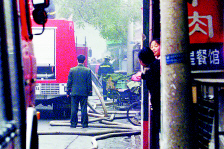 據(jù)介紹,大火發(fā)生于上午十時(shí)一刻,但二十分鐘后消防車才趕到,一個(gè)多小時(shí)后大火才被撲滅。一位消防員解釋說,由于路上堵車,另外米市胡同太窄,消防車只能在胡同外五十米處一字排開。