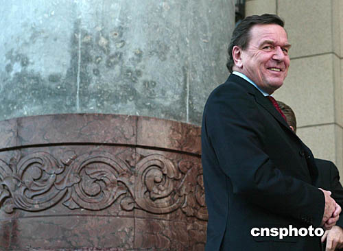 德國總理施羅德十二月七日與中國國家主席胡錦濤在北京舉行會見,活動結束后施羅德在人民大會堂外留念。中新社記者:滿會喬