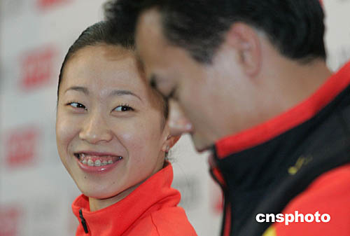 二零零四年十二月十六日到十九日,世界花樣滑冰大獎(jiǎng)賽總決賽將在北京首都體育館舉行,來(lái)自中國(guó)、美國(guó)、加拿大等八個(gè)國(guó)家的三十六名優(yōu)秀選手將角逐雙人滑、冰舞、男單、女單等四個(gè)項(xiàng)目的金牌。中國(guó)的三對(duì)雙人滑選手申雪/趙宏博、張丹/張昊、龐清/佟健和一名男子單人滑選手李成江進(jìn)入總決賽。由于米尼娜/馬列寧的缺陣,中國(guó)選手申雪/趙宏博目前一支獨(dú)秀,如無(wú)意外,雙人滑冠軍應(yīng)是他們的囊中之物。圖為申雪/趙宏博十二月七日在新聞發(fā)布會(huì)上。中新社記者:武仲林