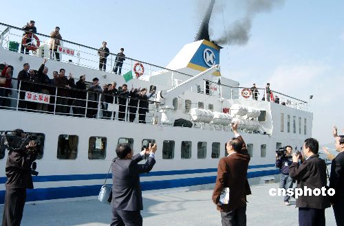 中新社福州十二月七日電 (記者陳國明)福建居民赴金門地區(qū)旅游七日正式啟動(dòng)。上午十時(shí)許,由五十多名福建游客組成的三個(gè)旅游團(tuán)乘坐“同安”號(hào)客輪從廈門和平碼頭啟程直航金門。