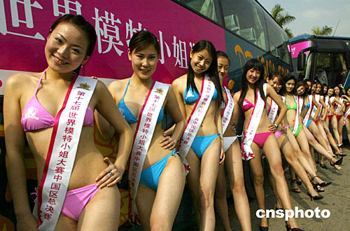 世界模特小姐選手展示風(fēng)采。正在深圳參加第十七屆世界模特小姐中國賽區(qū)總決賽的選手,七日拍攝賽前外景,圖為參賽佳麗身穿泳裝展示風(fēng)采。中新社記者:錢興強