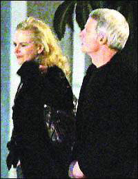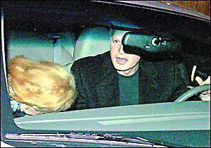 當晚,身著藍色毛衣和黑色休閑外套的史蒂夫用他的林肯轎車載著迷人的妮可前往他的錄音棚,車子一到達,妮可就迫不及待地鉆進去。妮可系著一條花絲巾,穿著一件黑色西服上衣,下車前,妮可不忘左張右望,看了又看。發(fā)現(xiàn)有人拍照時,機警地低下頭并用手遮臉,但神情并不慌張,臉上倒掛著甜蜜的笑。一路上兩人談談笑笑,廝守3個小時后,史蒂夫才送妮可回家,兩人牽手下車,朝妮可家中走去。