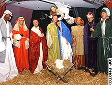 美國總統(tǒng)布什、英國首相布萊爾以及英國女王伊利莎白的丈夫——菲利浦親王也在這一場景中出現(xiàn),他們成為“耶穌誕生”時的三位智者。