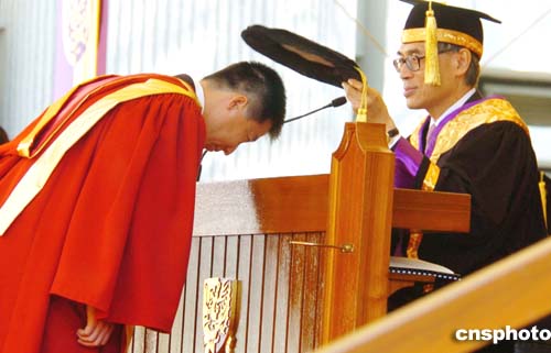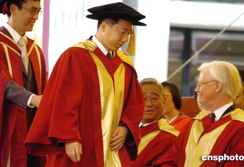香港中文大學校長劉遵義12月9日為中國首位登上太空的航天員楊利偉,頒授榮譽理學博士學位。作者:宋吉河
