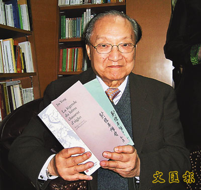中新網(wǎng)12月10日電 據(jù)香港文匯報(bào)報(bào)道,香港著名武俠小說作家查良鏞(金庸)首部翻譯成法文的《射雕英雄傳》于較早前面世,在香港唯一出售該本小說的書局昨晚特別舉行酒會(huì),并邀得查良鏞出席,為讀者在小說上簽名。