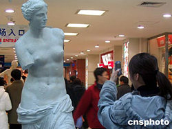 2004年12月13日,84件法國盧浮宮雕塑藝術(shù)品的復制品在北京免費展示。展覽在家樂福的中關(guān)村廣場舉辦,為期8天,為北京的普通消費者增加一個近距離了解法國國寶的機會。作者:張碩